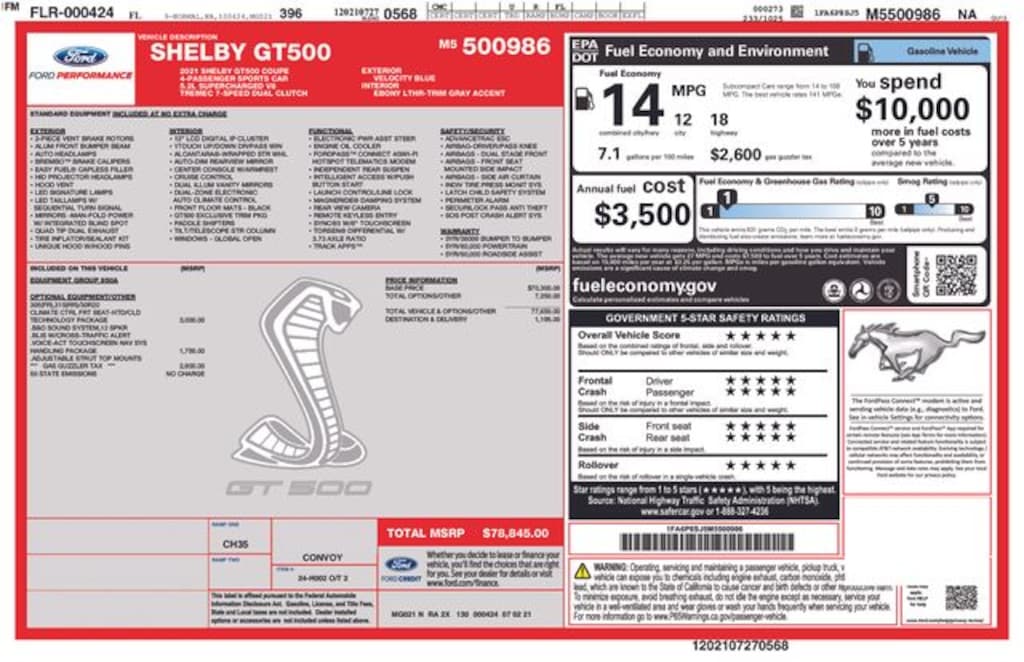 Experience the power and prestige of the 2021 Ford Mustang Shelby GT500. Visit our showroom today and let us help you make this iconic sports car your own.