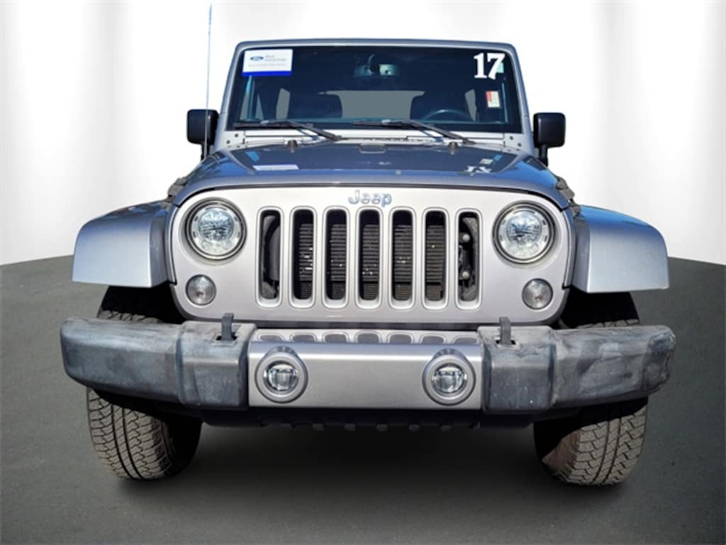 FIND IT AT FERMAN!, Free Delivery within 100 miles!, The 2017 Jeep Wrangler Unlimited Sahara is a four-door SUV that blends classic Jeep ruggedness with refined comfort. Powered by a 3.6-liter Pentastar V6 engine producing 285 horsepower and 260 lb-ft of torque, it comes equipped with standard four-wheel drive and both high- and low-range gearing for exceptional off-road capability. Fuel economy averages around 16 MPG in the city and 20 MPG on the highway, with a towing capacity of up to 3,500 pounds. It seats up to five passengers and offers up to 70.6 cubic feet of cargo space with the rear seats folded. The Sahara rides on a 116-inch wheelbase, measuring 184.9 inches in overall length, and features the iconic Wrangler proportions. The Sahara trim enhances style and comfort with body-colored fender flares, a more refined interior, and available touchscreen infotainment. Standard features include skid plates, a full-size spare tire, hill start assist, and hill descent control. Optional upgrades include automatic transmission, leather seating, and premium audio. With its balance of everyday drivability, off-road readiness, and upscale features, the 2017 Jeep Wrangler Unlimited Sahara is well-suited for both adventurous getaways and comfortable daily driving., 18" x 7.5" Polished Satin Carbon Wheels, 40GB Hard Drive w/28GB Available, Air Conditioning, Alpine 9-Speaker w/All Weather Subwoofer, Body Color Appliques Front Bumper, Body Color Appliques Rear Bumper, Body Color/Accent Color Grille, Connectivity Group, Front fog lights, GPS Navigation, Power steering, Power windows, Premium Black Sunrider Soft Top, Quick Order Package 24G, Remote keyless entry, Remote USB Port, Steering wheel mounted audio controls, Tire Pressure Monitoring Display, Uconnect Voice Command w/Bluetooth, Vehicle Information Center.