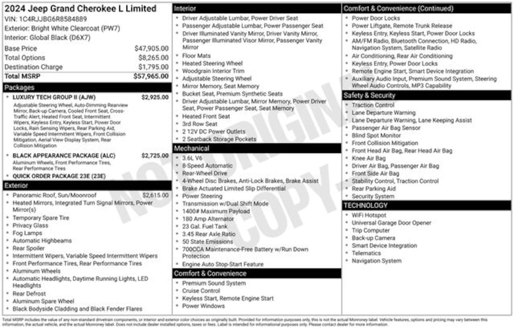 But the true beauty of this Grand Cherokee L Limited lies in its versatility. The Power Liftgate, Reclining 3rd Row Seat, and Split Folding Rear Seat provide ample cargo space and flexibility, making it the perfect companion for your adventures, whether it's a family road trip or a weekend getaway.