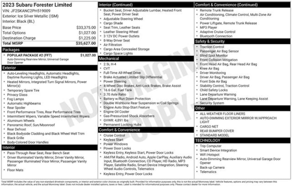 Visit our showroom today and let us demonstrate why this 2023 Subaru Forester Limited is the perfect SUV for your lifestyle. Experience the difference for yourself and discover the joy of driving a vehicle that truly exceeds expectations.