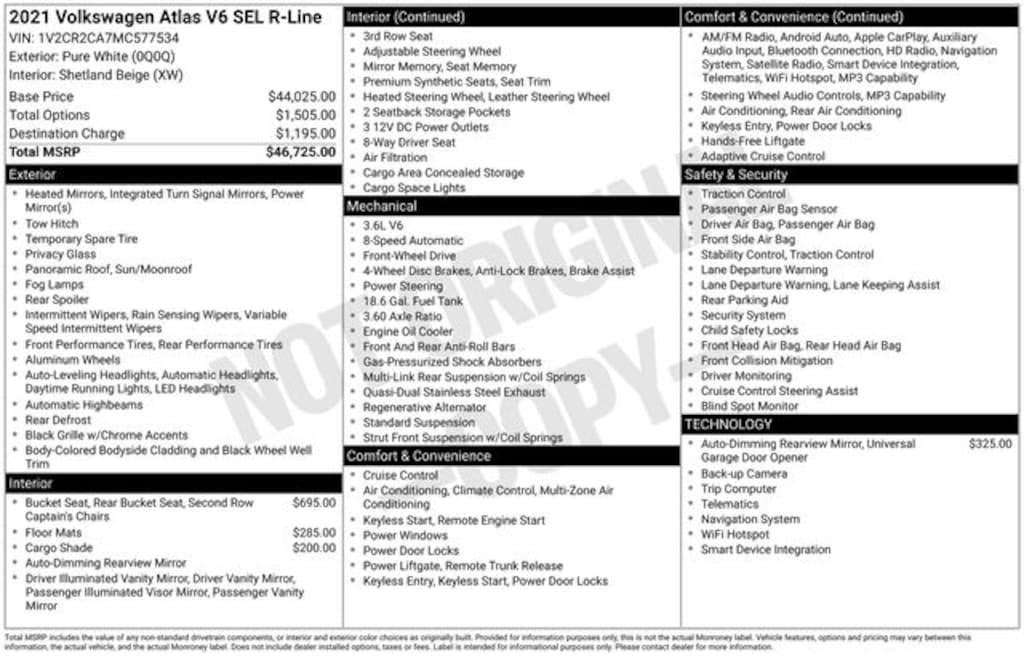 Elevate your driving experience with the Atlas's advanced technology features, including a Navigation System, Automatic Temperature Control, and a Rear-View Camera. Stay connected and in control, while enjoying the comfort of heated front seats and the convenience of a Power Liftgate.