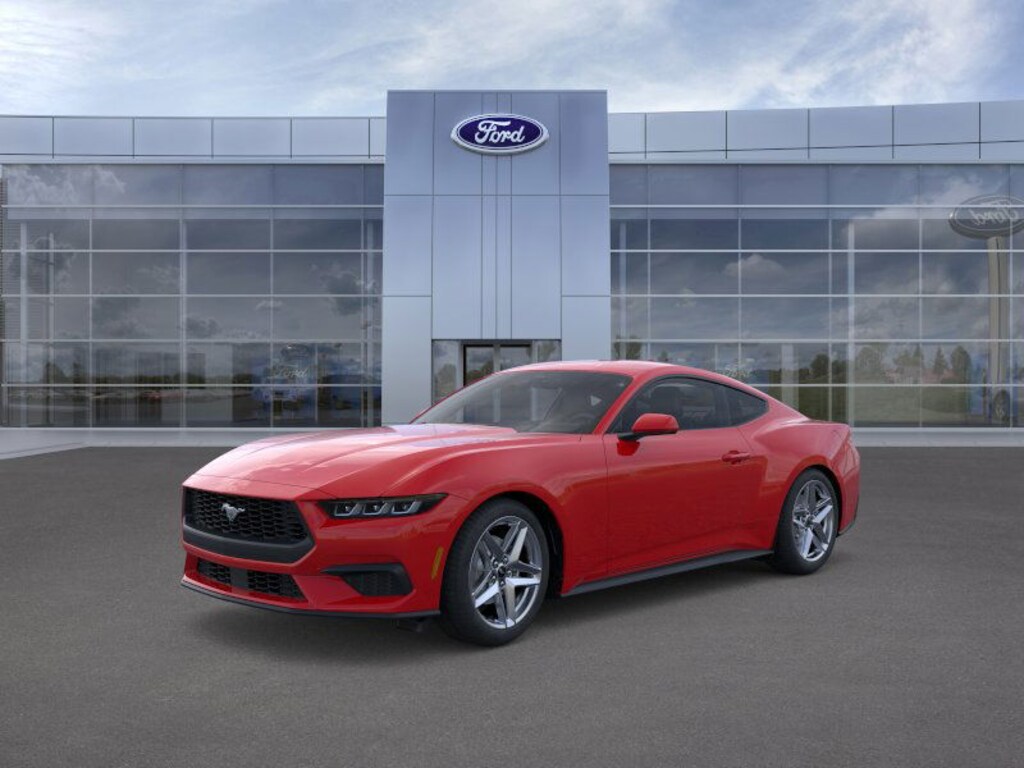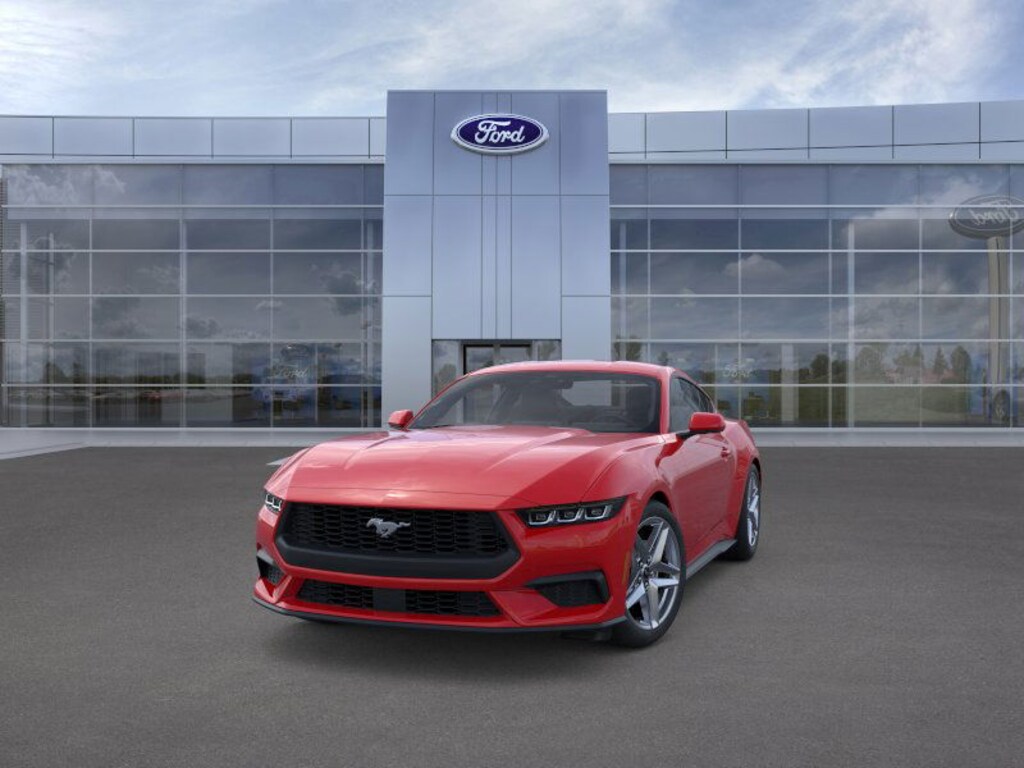 - The 2025 Ford Mustang EcoBoost delivers a modern take on classic muscle blending turbocharged performance sleek design and cutting-edge technology. Under the hood it features a 2.3-liter turbocharged inline-four engine producing 315 horsepower and 350 lb-ft of torque paired with a 10-speed automatic transmission for responsive and smooth gear shifts. Rear-wheel drive ensures an engaging and sporty driving experience. Inside the Mustang EcoBoost offers a refined driver-focused cabin with a 12.4-inch digital instrument cluster and a 13.2-inch touchscreen powered by SYNC 4. These displays provide customizable interfaces and seamless smartphone integration through wireless Apple CarPlay and Android Auto. The cabin seats four and includes supportive sport seats and high-quality materials for a comfortable ride. The Mustang EcoBoost also emphasizes safety with a suite of standard driver-assist features including Pre-Collision Assist with Automatic Emergency Braking a Lane-Keeping System Blind Spot Information System with Cross-Traffic Alert a rearview camera and automatic high-beam headlamps. With aggressive styling modern tech and turbocharged power the 2025 Ford Mustang EcoBoost offers an accessible entry point into the Mustang lineupideal for drivers seeking performance style and innovation in a legendary package.