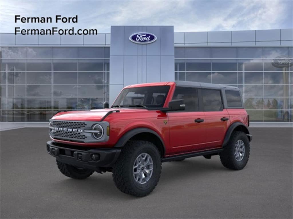 FIND IT AT FERMAN!, Free Delivery within 100 miles!, The 2025 Ford Bronco Badlands with the 2.7L EcoBoost engine, Lux Package, leather-trimmed interior, and hard top is built for drivers who demand premium comfort without sacrificing rugged off-road capability. This Bronco configuration strikes a perfect balance between utility, power, and refinement. Under the hood, it features a 2.7L twin-turbocharged EcoBoost V6 that delivers 330 horsepower and 415 lb-ft of torque, paired with a 10-speed automatic transmission. The Advanced 4x4 system with automatic on-demand engagement and the HOSS 3.0 suspension with FOX internal bypass dampers deliver exceptional handling and comfort over challenging terrain. With electronic-locking front and rear differentials and front stabilizer bar disconnect, this Bronco is ready to conquer technical off-road obstacles. It also includes seven G.O.A.T. Modes (Goes Over Any Terrain), including Rock Crawl and Mud/Ruts, for maximum adaptability. The Lux Package enhances the cabin with high-end features such as leather-trimmed heated front seats, a heated steering wheel, a wireless charging pad, and dual-zone automatic climate control. A 12-inch SYNC 4 touchscreen with enhanced voice recognition and navigation is paired with a premium B&O Sound System by Bang & Olufsen with 10 speakers, creating a connected and immersive driving experience. Additional highlights include a 360-degree camera system, adaptive cruise control, and evasive steering assist. The removable hard top offers improved cabin insulation and weather protection, while still allowing for open-air driving when desired. This configuration provides a quieter, more secure ride with the option for full adventure flexibility. KEY FEATURES: Engine: 2.7L EcoBoost V6 Horsepower: 330 hp Torque: 415 lb-ft Transmission: 10-speed automatic Drivetrain: Advanced 4x4 with automatic on-demand engagement Suspension: HOSS 3.0 with FOX internal bypass dampers Ground Clearance: Up to 11.6 inches Water Fording Capability: Up to 33.5 inches G.O.A.T. Modes: 7 selectable modes Interior: Leather-trimmed seats, heated front seats, heated steering wheel Technology: 12" SYNC 4 touchscreen, B&O sound system, wireless charging, 360-degree camera Roof: Removable hard top The 2025 Bronco Badlands 2.7L with Lux Package, leather, and hard top is the ultimate trail-ready SUV for those who want top-tier performance and elevated interior comfortperfect for both weekend adventures and daily drives., 360-Degree Camera, 4-Wheel Disc Brakes, Adaptive Cruise Control, Equipment Group 334A Lux Package, Evasive Steering Assist, Front Parking Sensors, Fully automatic headlights, Information on Demand Panel, Power steering, Power windows, Radio: B&O Sound System by Bang & Olufsen, Remote keyless entry, Sideview Mirrors, Steering wheel mounted audio controls, Universal Garage Door Opener. Not all customers qualify for all rebates. Price includes. : $1500 - Retail Bonus Cash. Exp. 01/05/2026