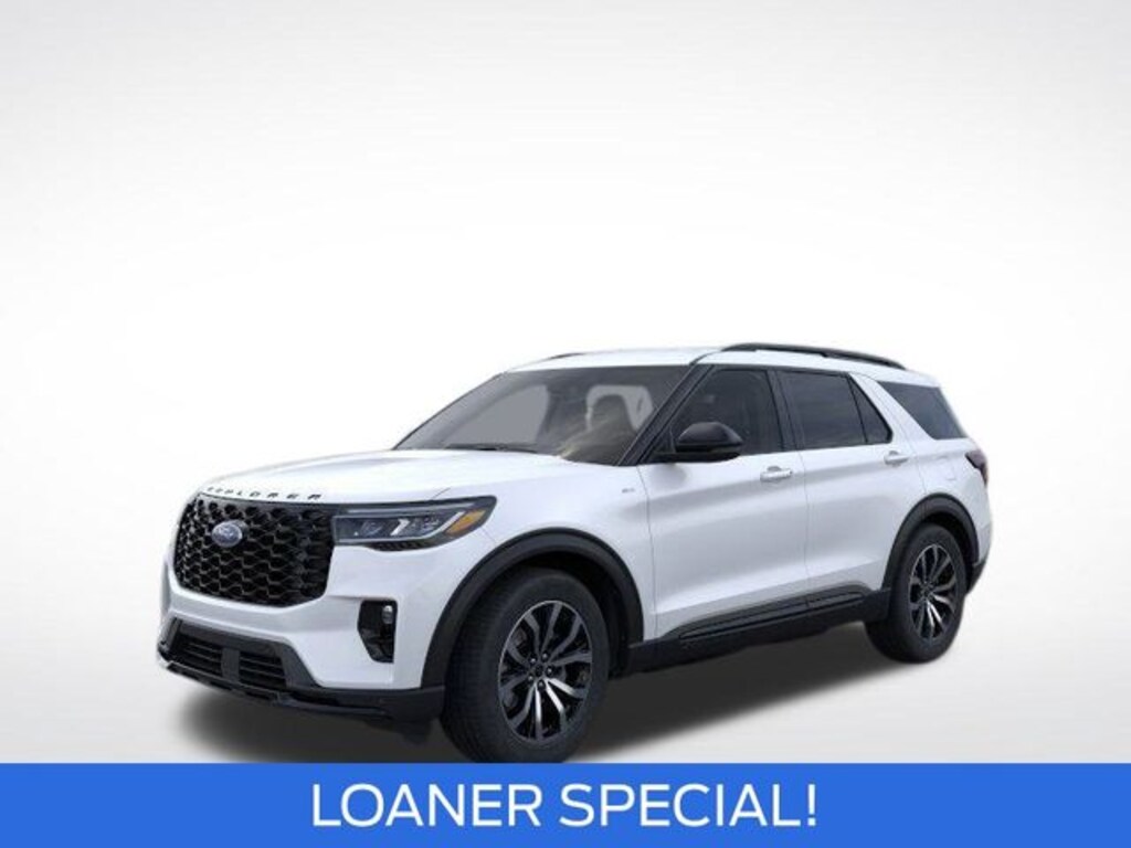 - The 2025 Ford Explorer ST-Line delivers sporty styling advanced technology and strong performance in a versatile three-row SUV. Designed for those who want the bold look of the high-performance ST without the added cost or powertrain the ST-Line strikes a perfect balance between everyday usability and street-inspired design. Under the hood it features a 2.3L EcoBoost turbocharged engine producing 300 horsepower and 310 lb-ft of torque paired with a 10-speed automatic transmission. Rear-wheel drive is standard while all-wheel drive is available for added traction and capability. This configuration allows for brisk acceleration and up to 5000 pounds of towing capacity. The exterior is enhanced with blacked-out accents a unique mesh grille LED lighting and available black roof. Inside the cabin features ActiveX synthetic leather-trimmed seats with red stitching a leather-wrapped heated steering wheel and a 10-way power drivers seat. A 13.2-inch touchscreen 12.3-inch digital instrument cluster wireless Apple CarPlay and Android Auto and Fords Co-Pilot360 Assist+ suite ensure a modern and connected drive. Available BlueCruise adds hands-free highway driving capability. With seating for up to seven and a maximum cargo capacity of around 85 cubic feet the 2025 Explorer ST-Line is both practical and stylish. It's an ideal choice for families or individuals looking for a tech-forward SUV with a sporty personality and everyday comfort.