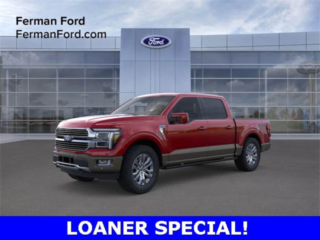 FIND IT AT FERMAN!, Free Delivery within 100 miles!, 2025 Ford F-150 King Ranch 3.5L EcoBoost FX4 Off-Road Rapid Red The 2025 Ford F-150 King Ranch blends uncompromising power with western-inspired luxury, creating a truck thats as capable as it is refined. Finished in bold Rapid Red, this King Ranch commands attention with its signature two-tone accents, unique badging, and premium chrome details. At its core, the 3.5L EcoBoost V6 delivers outstanding horsepower and torque, making towing and hauling effortless. The FX4 Off-Road Package equips this truck with skid plates, off-road shocks, and terrain management features, ensuring its ready for work, play, and everything in between. Inside, the King Ranch surrounds you with premium leather-trimmed seating, wood and aluminum accents, and advanced technology, including a large SYNC 4 touchscreen, digital instrument cluster, and B&O premium audio. With Ford Co-Pilot360 driver-assist features, youll have added confidence no matter the journey. From the ranch to the city, the 2025 F-150 King Ranch delivers legendary capability with a touch of luxury. Key Highlights: Rapid Red exterior with exclusive King Ranch styling 3.5L EcoBoost V6 for powerful towing and hauling FX4 Off-Road Package with rugged trail-ready features Premium King Ranch leather interior with advanced tech SYNC 4 infotainment and Ford Co-Pilot360 driver-assist features, 4WD, 4-Wheel Disc Brakes, 4x4 FX4 Off-Road Bodyside Decal, Automatic temperature control, Electronic Locking w/3.55 Axle Ratio, Equipment Group 601A High, Fully automatic headlights, FX4 Off-Road Package, Heads-Up Display, Hill Descent Control, Memory seat, Monotube Rear Shocks, Navigation system: Connected Navigation, Off-Road Tuned Front Shock Absorbers, Pedal memory, Power driver seat, Power moonroof, Power steering, Power windows, Radio: B&O Unleashed Sound System by Bang & Olufsen, Remote keyless entry, Rock Crawl Mode, Steering wheel memory, Steering wheel mounted audio controls, SYNC 4 w/Enhanced Voice Recognition, Ventilated front seats, Wheels: 20" Chrome-Like PVD. 2025 Ford F-150 King Ranch