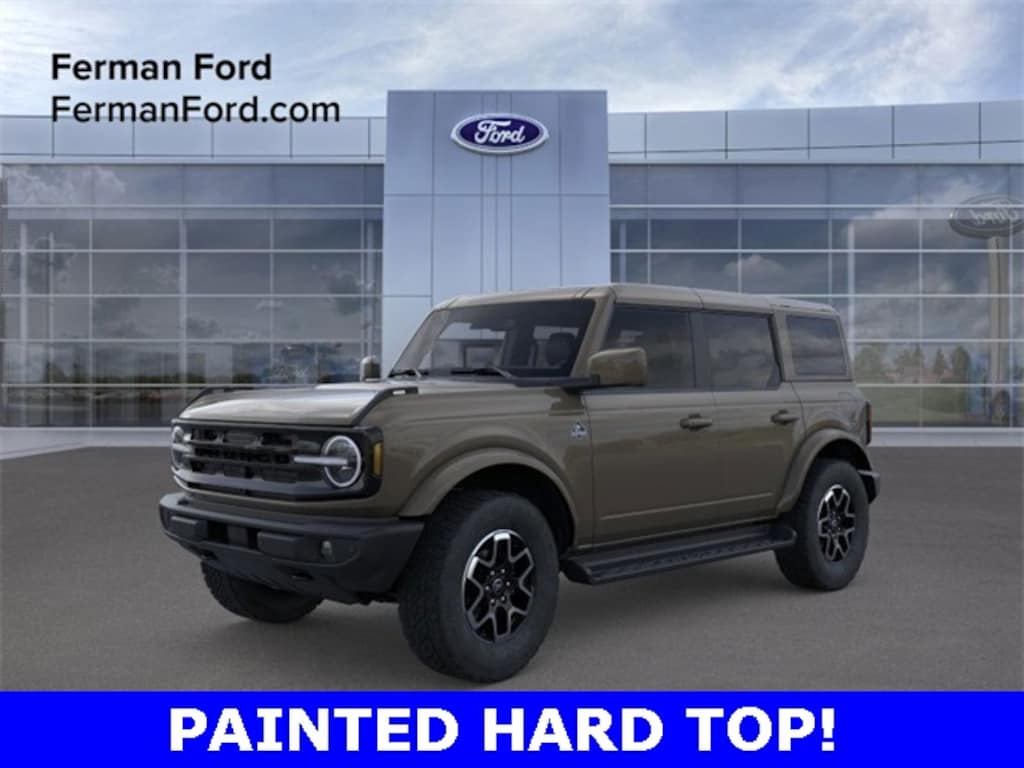 FIND IT AT FERMAN!, Free Delivery within 100 miles!, 4WP STEEL FRONT BUMPER, DUAL 6" LED LIGHTS IN BUMPER, 4WP STEEL SKID PLATE, HEAVY DUTY UPPER CONTROL ARMS, 20" HOSTILE PREMIUM WHEELS, 37" VENOM XT AT TIRES, SMITTY BILT HD REAR TIRE CARRIER, 4WP STELL SIDE STEPS, Adventure meets sophistication in the 2025 Ford Bronco Outer Banks, finished in stunning Marsh Gray with a matching painted hard top. This refined off-roader blends rugged performance with modern comfort, making it just as at home on city streets as it is on the trail. Under the hood, the Bronco Outer Banks packs a powerful 2.3L EcoBoost engine paired with a 10-speed automatic transmission, delivering responsive performance and efficiency. The 4x4 system, terrain management with G.O.A.T. Modes (Goes Over Any Type of Terrain), and available Trail Control let you tackle sand, mud, and rock with total confidence. The Marsh Gray exterior pairs perfectly with body-color fender flares, signature LED lighting, and 18-inch machined aluminum wheels with black-painted pocketscreating a bold, upscale look that stands out from every angle. The painted hard top enhances style and durability while providing quieter cabin comfort on long drives. Inside, the Outer Banks trim surrounds you in elevated comfort with heated leather-trimmed seats, a 12-inch SYNC 4 touchscreen, Ford Co-Pilot360 safety suite, and premium sound. Youll also enjoy smart connectivity with Apple CarPlay, Android Auto, and available FordPass Connect with remote features and Wi-Fi hotspot capability. The 2025 Bronco Outer Banks in Marsh Gray is where capability and class convergeready to explore beyond the pavement in true Ford style., 4-Wheel Disc Brakes, Automatic temperature control, Electronic Stability Control, Equipment Group 312A Mid Package, Exterior Parking Camera Rear, Fully automatic headlights, Navigation system: Connected Navigation, Power driver seat, Power steering, Power windows, Radio data system, Remote keyless entry, Steering wheel mounted audio controls, Traction control. Not all customers qualify for all rebates. Price includes. : $2000 - Retail Bonus Cash. Exp. 01/05/2026