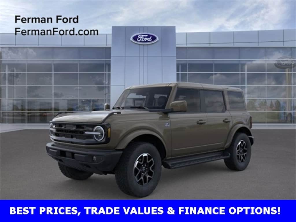 FIND IT AT FERMAN!, Free Delivery within 100 miles!, The 2025 Ford Bronco Outer Banks in Marsh Gray strikes the perfect balance between rugged capability and modern sophistication. Its distinctive Marsh Gray exterior adds a unique tonesleek, earthy, and upscalewhile still capturing the Broncos unmistakable toughness. Designed for those who want adventure without sacrificing comfort, this Bronco commands attention both on and off the road. EXTERIOR & DESIGN Marsh Gray exterior highlights the Broncos bold proportions, muscular stance, and clean body lines. 18-inch machined aluminum wheels wrapped in all-terrain tires blend urban polish with trail-ready traction. LED signature headlamps and fog lights deliver crisp, modern illumination. Body-color fender flares and blacked-out accents complement the refined yet rugged design. Removable doors and roof panels for open-air freedom on demand. POWER & PERFORMANCE Turbocharged 2.3L EcoBoost engine delivering up to 300 horsepower for responsive on-road and off-road performance. 10-speed automatic transmission ensures smooth power delivery and fuel efficiency. Standard 4x4 system with advanced G.O.A.T. (Goes Over Any Terrain) ModesNormal, Eco, Sport, Slippery, Mud/Ruts, Sand, and Rock Crawlallow you to conquer any landscape with confidence. Capable of towing up to 3,500 lbs when properly equipped. Optional off-road packages enhance suspension travel, underbody protection, and terrain handling. INTERIOR & TECHNOLOGY Premium cabin design with soft-touch materials, contrast stitching, and available leather-trimmed seating. Heated front seats and dual-zone automatic climate control for year-round comfort. SYNC 4 infotainment system with a large touchscreen, Apple CarPlay, Android Auto, and voice recognition. Fully digital instrument cluster with customizable drive information and off-road data. Available premium audio system for an immersive listening experience. SAFETY & DRIVER ASSISTANCE Ford Co-Pilot360 technology includes Blind Spot Information System, Lane-Keeping System, Rear View Camera, and Pre-Collision Assist with Automatic Emergency Braking. 360-Degree Camera with off-road views enhances visibility on trails and tight maneuvers. BORN FOR THE BEACH. BUILT FOR THE TRAIL. The 2025 Ford Bronco Outer Banks 2.3L in Marsh Gray embodies adventure with sophistication. Its as at home exploring backcountry trails as it is pulling up to a coastal dinner spotoffering comfort, capability, and unmistakable Bronco spirit in every mile., 4-Wheel Disc Brakes, Automatic temperature control, Equipment Group 312A Mid Package, Exterior Parking Camera Rear, Fully automatic headlights, Navigation system: Connected Navigation, Power driver seat, Power steering, Power windows, Remote keyless entry, SiriusXM w/360L, Steering wheel mounted audio controls. Not all customers qualify for all rebates. Price includes. : $2000 - Retail Bonus Cash. Exp. 01/05/2026