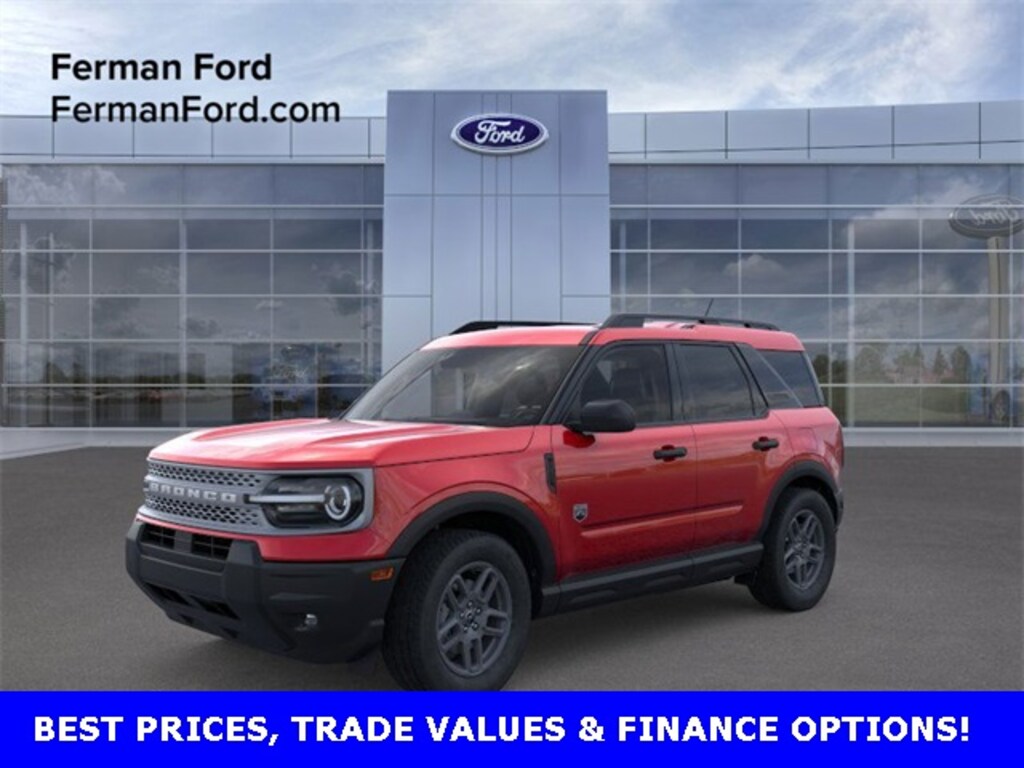FIND IT AT FERMAN!, Free Delivery within 100 miles!, Adventure-ready and city-smart, the 2025 Ford Bronco Sport Big Bend is built for drivers who want rugged capability without sacrificing everyday comfort. This trim strikes the perfect balance between affordability, style, and utility giving you the legendary Bronco attitude in a compact, easy-to-live-with SUV. Under the hood, the Big Bend is powered by a turbocharged 1.5L EcoBoost engine producing 181 horsepower and paired with an 8-speed automatic transmission. Standard 4x4 capability and five G.O.A.T. Modes (Goes Over Any Type of Terrain) Normal, Eco, Sport, Slippery, and Sand let you adapt effortlessly to changing road or trail conditions. Its confident stance, durable underbody design, and available Black Diamond Off-Road Package with steel skid plates and all-terrain tires enhance your ability to tackle the unexpected. The 2025 model brings refined styling with a redesigned grille and bumper, rugged 17-inch aluminum wheels, and a roof rack ready for bikes, kayaks, or camping gear. Inside, the Big Bend is all about practicality and tech: easy-to-clean cloth seats, rubberized cargo flooring, and a spacious cabin that can haul gear for five passengers. A new 13.2-inch touchscreen with SYNC 4, wireless Apple CarPlay and Android Auto, and available Ford Co-Pilot360 driver-assist features including Adaptive Cruise Control and Blind Spot Information System make every trip connected and confident. Whether youre cruising through Clearwater Beach or venturing down Floridas backroads, the 2025 Bronco Sport Big Bend delivers a mix of smart technology, trail-inspired toughness, and everyday convenience that sets it apart. Bold, capable, and ready for anything this is the Bronco spirit made practical., 4-Wheel Disc Brakes, Automatic temperature control, Convenience Package, Equipment Group 200A, Front Driver/Passenger Seat Back Map Pockets, Fully automatic headlights, Heated 8-Way Power Driver's Seat, LED Fog Lamps, Power steering, Power windows, Premium Wrapped Steering Wheel, Rear Parking Sensors, Remote keyless entry, Steering wheel mounted audio controls, SYNC 4 w/Enhanced Voice Recognition, Universal Garage Door Opener (UGDO). Not all customers qualify for all rebates. Price includes. : $1000 - Open Bonus Cash. Exp. 11/03/2025 $1000 - Retail Bonus Cash. Exp. 01/05/2026