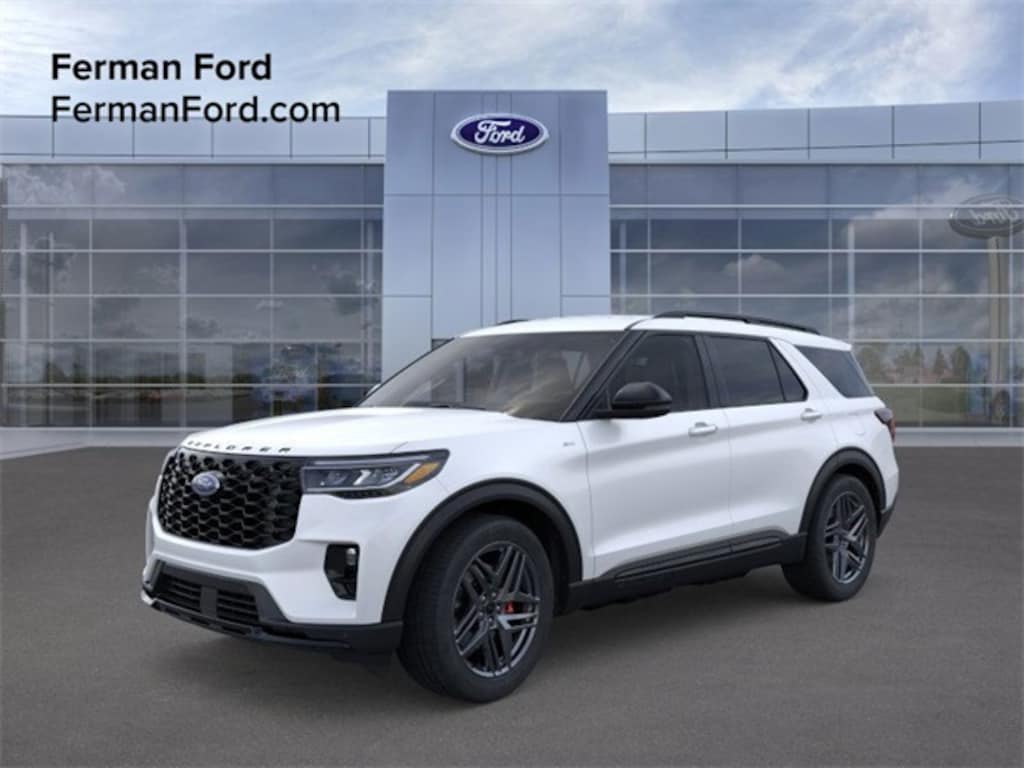 FIND IT AT FERMAN!, Free Delivery within 100 miles!, The 2025 Ford Explorer ST-Line with Premium and Street Pack combines bold, performance-inspired styling with upscale comfort and advanced technology. Designed to capture the sporty attitude of the high-performance ST while maintaining efficiency, this trim adds exclusive appearance upgrades, premium amenities, and enhanced street presence. EXTERIOR Aggressive ST-Line grille with black mesh and signature badging Street Pack adds 21-inch high-gloss black aluminum wheels and performance brake calipers with red accents Premium Package adds LED fog lamps and upgraded headlights for improved visibility Black-painted roof rails, mirror caps, and window trim for a sleek, athletic profile Power liftgate for convenient cargo access INTERIOR & TECHNOLOGY Leather-trimmed seating surfaces with Miko suede inserts and red stitching Premium Package adds heated and ventilated front seats, heated second-row seats, and power-adjustable passenger seat 12.3-inch digital instrument cluster with customizable display SYNC 4 infotainment with large touchscreen, wireless Apple CarPlay and Android Auto Premium sound system for an immersive listening experience Tri-zone electronic automatic temperature control for personalized comfort in all rows PERFORMANCE Engine 2.3L EcoBoost I-4 delivering responsive power and efficiency Transmission 10-speed automatic for smooth and quick gear changes Drivetrain Standard rear-wheel drive, available Intelligent 4WD for added traction Handling Street Pack tuned for improved on-road feel and control SAFETY & DRIVER ASSIST Ford Co-Pilot360 suite including Blind Spot Information System, Lane-Keeping System, and Pre-Collision Assist with Automatic Emergency Braking Rearview camera with washer and available 360-degree camera system Adaptive Cruise Control with Stop-and-Go and Lane Centering available for added convenience SUMMARY The 2025 Ford Explorer ST-Line with Premium and Street Pack delivers a striking mix of style, comfort, and everyday usability. With its sporty design, upgraded features, and confident performance, its the perfect SUV for drivers who want standout looks with premium amenities., ., 110V/150W AC Power Outlet, 2nd Row Heated Seats, 4-Wheel Disc Brakes, Ambient Lighting, Apple CarPlay/Android Auto, Automatic temperature control, Equipment Group 300A Standard Package, Exterior Parking Camera Rear, Four wheel independent suspension, Fully automatic headlights, Memory Driver's Seat, Navigation System, Performance Brakes, Power driver seat, Power steering, Power windows, Power-Folding Sideview Mirrors w/Autofold, Premium Package, Radio: B&O Sound System by Bang & Olufsen, Rain-Sensing Wipers (Front Only), Red Painted Perf Front & Rear Brake Calipers, Remote keyless entry, ST-Line Street Pack, Steering wheel mounted audio controls, Wheels: 21" Magnetite-Painted Aluminum, Wireless Charging Pad. Not all customers qualify for all rebates. Price includes. : $1500 - Bonus Customer Cash. Exp. 01/05/2026