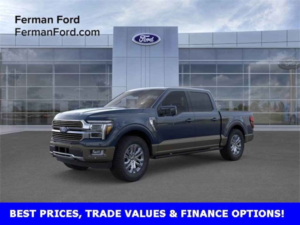 FIND IT AT FERMAN!, Free Delivery within 100 miles!, The 2025 Ford F-150 King Ranch SuperCrew 3.5L FX4 4x4 blends premium western-inspired luxury with legendary Ford toughness. Designed for drivers who expect refined comfort without sacrificing strength, this truck delivers impressive capability, advanced technology, and distinctive King Ranch style. PERFORMANCE Powered by a 3.5L EcoBoost V6 engine paired with a 10-speed automatic transmission for strong acceleration and towing capability. Standard 4x4 system ensures confident handling on all terrains. Equipped with the FX4 Off-Road Package, adding: Off-road tuned suspension and skid plates Electronic-locking rear differential Hill Descent Control and Rock Crawl mode Enhanced durability for demanding trails EXTERIOR DESIGN Signature King Ranch styling with bold chrome accents and unique Caribou two-tone paint options. 20-inch machined aluminum wheels with King Ranch detailing. LED headlamps, fog lamps, and signature lighting for a commanding presence. Power-deployable running boards and chrome/two-tone body accents elevate its premium look. INTERIOR & COMFORT Spacious SuperCrew cab with seating for up to five passengers. Luxurious Del Rio leather-trimmed seats featuring the iconic King Ranch Running W branding. Heated and ventilated front seats, heated rear outboard seats, and power-adjustable steering column. Advanced interior technology with customizable digital displays and premium finishes inspired by western craftsmanship. TECHNOLOGY & SAFETY SYNC 4 infotainment system with large touchscreen, Apple CarPlay and Android Auto. Available B&O premium sound system for concert-quality audio. Ford Co-Pilot360 safety suite, including Blind Spot Information System (BLIS), Pre-Collision Assist with Automatic Emergency Braking, Lane-Keeping System, and more. Optional driver-assist upgrades such as Adaptive Cruise Control with Stop-and-Go and Active Park Assist. CAPABILITY Max towing up to 13,000 lbs (when properly equipped). Payload capacity up to 2,200 lbs, making it as practical as it is luxurious. Multiple drive modes including Normal, Eco, Sport, Slippery, Tow/Haul, plus advanced off-road selections from the FX4 package. SUMMARY The 2025 Ford F-150 King Ranch SuperCrew 3.5L FX4 4x4 is the ultimate blend of rugged capability and premium craftsmanship. With its powerful EcoBoost engine, off-road enhancements, and distinctive King Ranch luxury, its built to conquer tough jobs, long journeys, and weekend adventures in style., 4WD, 4-Wheel Disc Brakes, 4x4 FX4 Off-Road Bodyside Decal, Automatic temperature control, Fully automatic headlights, FX4 Off-Road Package, Heads-Up Display, Hill Descent Control, Memory seat, Monotube Rear Shocks, Navigation system: Connected Navigation, Off-Road Tuned Front Shock Absorbers, Pedal memory, Power driver seat, Power moonroof, Power steering, Power windows, Radio: B&O Unleashed Sound System by Bang & Olufsen, Remote keyless entry, Rock Crawl Mode, Steering wheel memory, Steering wheel mounted audio controls, SYNC 4 w/Enhanced Voice Recognition, Ventilated front seats, Wheels: 20" Chrome-Like PVD.