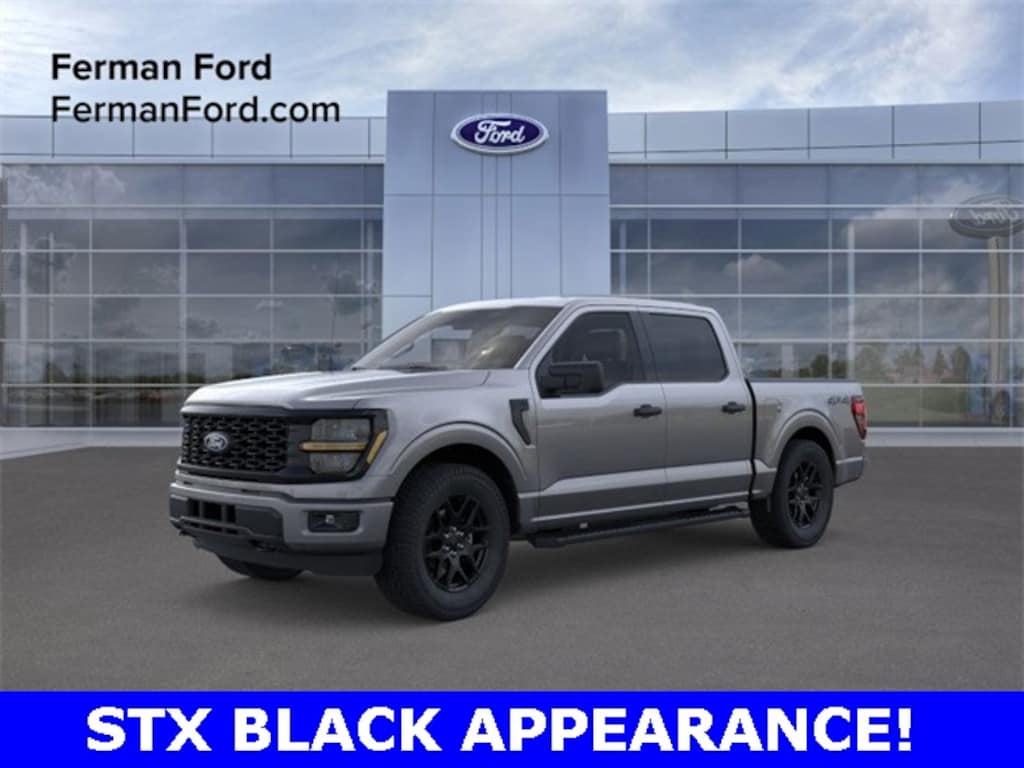 FIND IT AT FERMAN!, Free Delivery within 100 miles!, 2025 Ford F-150 STX SuperCrew 2.7 L EcoBoost, 4Ã4, Black Appearance Dark Looks, Big Presence Wrapped in the Black Appearance Package, this F-150 STX makes a bold statement. Gloss-black grille, badging, mirror caps, and trim paired with black-finish wheels and possibly dark-tinted lighting elements give the truck a stealthy, modern aesthetic. The SuperCrew body adds serious room for passengers while retaining full truck capability. Power and Practicality With the turbocharged 2.7 L EcoBoost under the hood, this pickup delivers a responsive, efficient driving experience perfect for daily commuting, weekend adventures, or light-duty towing. The 4Ã4 drivetrain enhances traction and off-pavement confidence, while the SuperCrew configuration ensures comfort and space for your crew or family on every journey. Interior Comfort Meets Function Inside, the STX trim keeps things grounded but comfortable. Expect a roomy cabin with smart ergonomics and user-friendly tech: a large center touchscreen with Fords infotainment system, solid storage solutions, and easy-to-clean surfaces. Power windows, remote keyless entry, and available convenience upgrades make this truck equally at home on a work site or family road trip. Ready for Anything This SuperCrew 4Ã4 is built to be versatile. The bed is accessible and practical, and the truck offers good towing and hauling features without going overboard. Whether youre hauling gear, towing a small trailer, or simply navigating city streets and weekend excursions, it strikes a smart balance of rugged capability and refined style., 4WD, 20" Wheels, 4-Wheel Disc Brakes, 6" Black Running Boards, Air Conditioning, Black Exterior Badging, Fully automatic headlights, Gray Box Side Decal, Power steering, Power windows, Radio: AM/FM Stereo w/SiriusXM 360L, Rear Parking Sensors, Remote keyless entry, Steering wheel mounted audio controls, STX Black Appearance Package, SYNC 4 w/Enhanced Voice Recognition, Unique Sport Cloth 40/Console/40 Front-Seats, Wheels: 20" Gloss Black. Not all customers qualify for all rebates. Price includes. : $1000 - Bonus Customer Cash. Exp. 01/05/2026