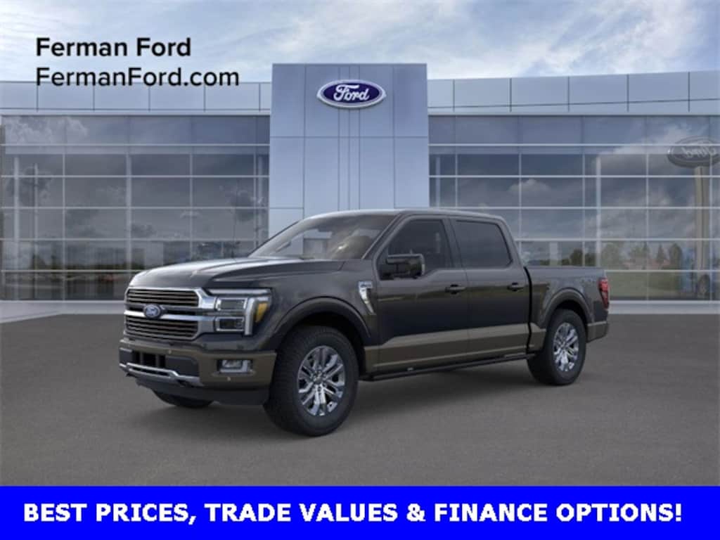 FIND IT AT FERMAN!, Free Delivery within 100 miles!, 2025 Ford F-150 King Ranch 3.5 L EcoBoost, FX4 4Ã4 Elevated Western Comfort Meets Rugged Utility The King Ranch trim blends upscale styling with capable designthink rich leather surfaces, signature trim accents, and western-inspired branding inside a rugged body built for performance. Its a premium truck that feels fitting for both upscale city cruising and off-the-grid adventures. Strong and Responsive Performance Under the hood, the 3.5 L twin-turbocharged EcoBoost V6 delivers a smooth balance of power and torque, giving this truck generous towing strength and confident acceleration. The FX4 off-road package further sharpens its ability with features such as off-road tuned suspension, skid plates for underbody protection, hill-descent control, and all-terrain tiresmaking rugged trails feel significantly more manageable. Luxurious Yet Functional Interior The cabin of the King Ranch trim offers a plush and practical environmentparallel to a refined leather throne with contrast stitching, embossed branding, and warm-toned trim. Heated and ventilated front seats, heated rear seats, and a heated steering wheel come together to create a comfortable ride regardless of weather or distance. A spacious layout, intuitive controls, and smart storage keep things both elegant and versatile. Smart Towing Tech & Safety The FX4-equipped King Ranch also brings serious trailer capability, thanks to advanced systems like Pro Trailer Backup Assist, trailer-sway control, and optional tow packages. Youll find added confidence from features like blind-spot monitoring, adaptive cruise control, and a 360-degree camera systemmaking towing and maneuvering both safer and easier. Tough Meets Refined Built for those who dont want to sacrifice elegance for utility, the 2025 F-150 King Ranch FX4 delivers. It stands out with its refined materials, modern tech, and exterior flair, while its capabilities shine on uneven, adventurous terrainor on the job site, where durability is key., 4WD, 4-Wheel Disc Brakes, 4x4 FX4 Off-Road Bodyside Decal, Automatic temperature control, Fully automatic headlights, FX4 Off-Road Package, Heads-Up Display, Hill Descent Control, Memory seat, Monotube Rear Shocks, Navigation system: Connected Navigation, Off-Road Tuned Front Shock Absorbers, Pedal memory, Power driver seat, Power moonroof, Power steering, Power windows, Radio: B&O Unleashed Sound System by Bang & Olufsen, Remote keyless entry, Rock Crawl Mode, Steering wheel memory, Steering wheel mounted audio controls, SYNC 4 w/Enhanced Voice Recognition, Ventilated front seats.