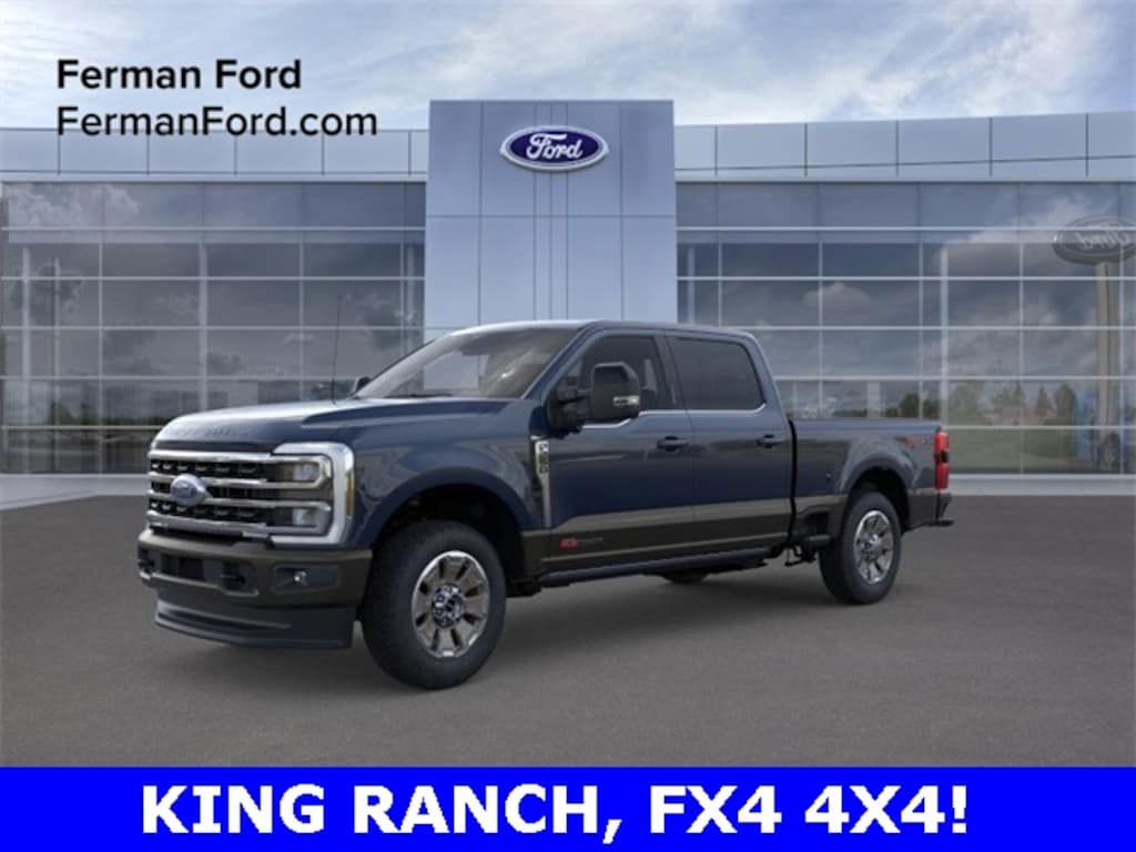 FIND IT AT FERMAN!, Free Delivery within 100 miles!, The 2025 Ford F-250 Super Duty King Ranch with the 6.7L High Output Power Stroke Diesel is the ultimate blend of strength, sophistication, and signature Western style. Designed for those who need serious capability without sacrificing luxury, this truck delivers performance, comfort, and commanding presence in every mile. At its heart is the 6.7L High Output Power Stroke V8 Turbo Diesel, producing approximately 475 horsepower and an incredible 1,050 lb-ft of torque. Mated to a 10-speed TorqShift automatic transmission and standard 4x4 drivetrain, its built to tow with confidence and conquer tough jobs. When properly equipped, towing capacity can reach up to 22,000 pounds, with equally impressive payload capability. The King Ranch trim exudes boldness and class with its signature two-tone exterior, chrome accents, and King Ranch badging. Inside, the cabin features premium Del Rio leather-trimmed seats, heated and ventilated front seating, genuine wood accents, and a Western-themed design thats both rugged and refined. The spacious SuperCrew cab offers exceptional comfort for passengers and ample storage options. Technology is front and center with a large SYNC 4 touchscreen, wireless Apple CarPlay and Android Auto, built-in navigation, Wi-Fi hotspot capability, and an available B&O premium audio system. A digital instrument cluster, wireless charging pad, and head-up display enhance daily usability. Safety and trailering features include Pro Trailer Backup Assist, trailer brake controller, blind spot monitoring with trailer coverage, 360-degree camera, adaptive cruise control, lane-keeping assist, and hill descent control. Whether you're hauling heavy loads, heading to the ranch, or hitting the road in comfort, the 2025 F-250 King Ranch High Output Diesel offers legendary capability with upscale refinementbuilt for those who expect more from their truck., 4WD, ABS brakes, Alloy wheels, Compass, Electronic Stability Control, Front dual zone A/C, Fully automatic headlights, FX4 Off-Road Package, Heads-Up Display, Heated door mirrors, Heated front seats, Heated rear seats, Hill Descent Control, Illuminated entry, Low tire pressure warning, Memory seat, Navigation System, Off-Road Specifically Tuned Shock Absorbers, Pedal memory, Power driver seat, Power steering, Power windows, Radio: B&O Unleashed Sound System by Bang & Olufsen, Remote keyless entry, SiriusXM Radio w/360L, Steering wheel mounted audio controls, SYNC 4 w/Enhanced Voice Recognition, Traction control, Twin Panel Power Moonroof, Unique FX4 Off-Road Box Decal, Ventilated front seats, Wheels: 20" Bright Machined Cast Aluminum.