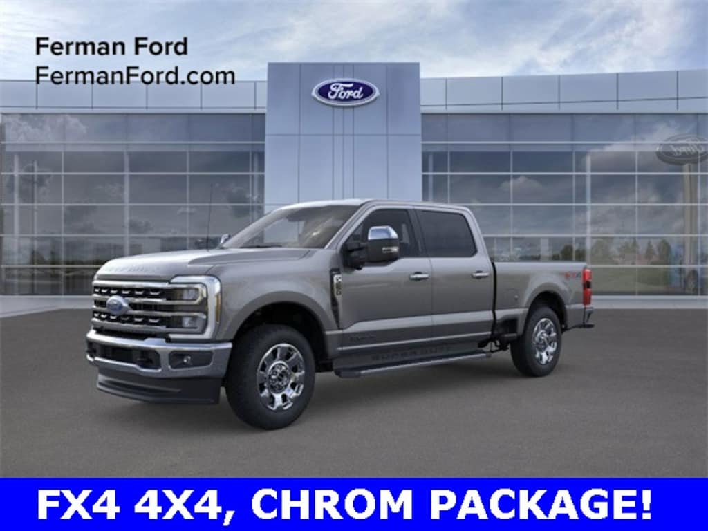 FIND IT AT FERMAN!, Free Delivery within 100 miles!, The 2025 Ford F-250 Super Duty Lariat 6.7L FX4 4x4 is a premium heavy-duty truck built for those who demand power, durability, and refinement. Powered by a 6.7L Power Stroke V8 Turbo Diesel engine paired with a 10-speed automatic transmission, this setup delivers exceptional torque and towing performance, making it ideal for heavy-duty hauling and demanding workloads. With the FX4 Off-Road Package, this F-250 gains enhanced off-road capability, including skid plates, off-road tuned suspension, electronic-locking rear differential, and all-terrain tires. The 4x4 drivetrain ensures confident handling in rugged conditions while maintaining smooth performance on the highway. The Lariat trim brings upscale comfort and technology, including leather-trimmed seats, heated and ventilated front seats, dual-zone automatic climate control, a 12-inch SYNC 4 touchscreen, premium audio system, and wireless Apple CarPlay and Android Auto. Advanced trailering features like trailer sway control, trailer reverse guidance, and blind spot monitoring with trailer coverage simplify towing and increase safety. Exterior highlights include bold chrome accents, LED lighting, power-deployable running boards, and available black appearance packages for added style. Inside, the spacious Crew Cab design offers generous legroom and smart storage options, including lockable under-seat compartments and a configurable center console. Whether you're towing up to 22,000 pounds or venturing off-road, the 2025 F-250 Lariat 6.7L FX4 4x4 delivers top-tier performance with refined luxury, making it a standout choice in the heavy-duty truck segment., 4WD, 6" Angular Bright Anodized Step Bars, ABS brakes, Alloy wheels, Chrome Door Handles, Chrome Exhaust Tip, Chrome Package, Compass, Electronic Stability Control, F-250 >10K GVWR Package, Front dual zone A/C, Fully automatic headlights, FX4 Off-Road Package, Heated door mirrors, Heated front seats, Heated rear seats, Hill Descent Control, Illuminated entry, Low tire pressure warning, Memory seat, Navigation System, Off-Road Specifically Tuned Shock Absorbers, Pedal memory, Power driver seat, Power steering, Power windows, Remote keyless entry, Steering wheel mounted audio controls, SYNC 4 w/Enhanced Voice Recognition, Traction control, Unique Chrome Mirror Caps, Unique FX4 Off-Road Box Decal, Ventilated front seats, Wheels: 20" Chrome PVD Aluminum.