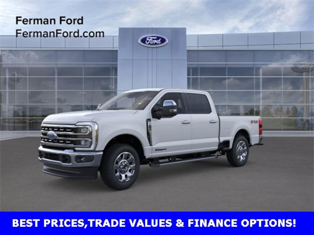 FIND IT AT FERMAN!, Free Delivery within 100 miles!, The 2025 Ford F-250 Super Duty Lariat 6.7L Power Stroke Diesel with the FX4 4x4 Off-Road Package is built to deliver exceptional strength, comfort, and off-road capability in one premium heavy-duty package. Under the hood is the powerful 6.7L V8 Power Stroke Turbo Diesel engine, producing 475 horsepower and 1,050 lb-ft of torque. Paired with a 10-speed TorqShift automatic transmission, this setup ensures smooth shifting and exceptional torque delivery for towing, hauling, or tackling rugged terrain. For those needing more power, the high-output version offers 500 horsepower and 1,200 lb-ft of torque. The FX4 Off-Road Package equips the F-250 with specially tuned Rancho shocks, skid plates, an electronic-locking rear differential, and hill descent control, along with all-terrain tiresenhancing traction, control, and durability off the pavement. With a towing capacity reaching up to 23,000 pounds and impressive payload ratings, this truck is ready for serious work. The 4x4 drivetrain ensures confident handling in tough conditions, whether on the job site or out on the trail. Inside, the Lariat trim offers a refined cabin with ActiveX-trimmed seats, dual-zone automatic climate control, power front seats, a leather-wrapped steering wheel, and wood-style trim accents. A 12-inch SYNC 4 touchscreen with Apple CarPlay, Android Auto, and advanced towing and camera systems provides intuitive connectivity and control. From its muscular stance and rugged FX4 enhancements to its luxurious interior and advanced towing technologies, the 2025 F-250SD Lariat 6.7L FX4 4x4 is ideal for drivers who demand power, comfort, and capability in a bold, purpose-built truck., 4WD, 4-Wheel Disc Brakes, 6" Angular Bright Anodized Step Bars, ABS brakes, Alloy wheels, Chrome Door Handles, Chrome Exhaust Tip, Chrome Package, Compass, Electronic Stability Control, F-250 >10K GVWR Package, Front dual zone A/C, Fully automatic headlights, FX4 Off-Road Package, Heated door mirrors, Heated front seats, Heated rear seats, Hill Descent Control, Illuminated entry, Low tire pressure warning, Memory seat, Navigation System, Off-Road Specifically Tuned Shock Absorbers, Pedal memory, Power driver seat, Power steering, Power windows, Radio: B&O Sound System by Bang & Olufsen, Remote keyless entry, SiriusXM Radio w/360L, Steering wheel mounted audio controls, SYNC 4 w/Enhanced Voice Recognition, Traction control, Twin Panel Power Moonroof, Unique Chrome Mirror Caps, Unique FX4 Off-Road Box Decal, Ventilated front seats, Wheels: 20" Chrome PVD Aluminum.