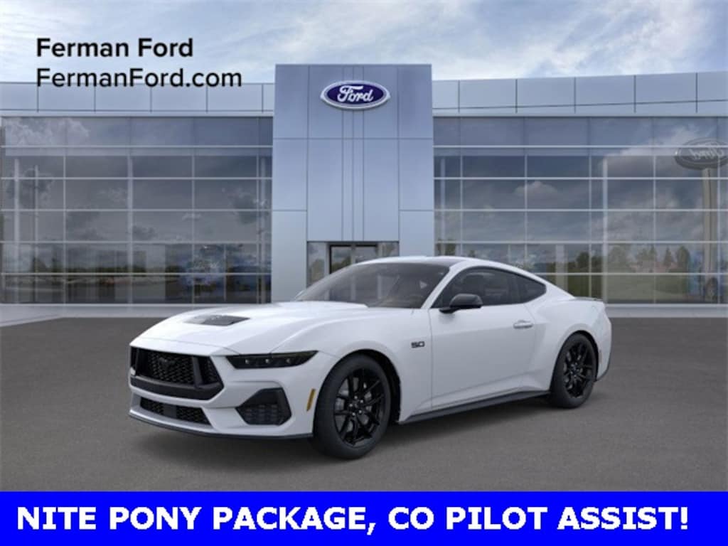 FIND IT AT FERMAN!, Free Delivery within 100 miles!, 2025 Ford Mustang GT Premium Nite Pony Package Performance & Heart At its core, the GT Premium is powered by Fords time-honored 5.0 L V-8 (Ti-VCT) delivering around 480 horsepower and 415 lb-ft of torque. Its offered with a choice of a 6-speed manual (with rev-match downshifts) or a 10-speed automatic transmission. You get rear-wheel-drive dynamics, a limited-slip differential, and performance-tuned chassis components that make this Mustang feel alive and responsive in all driving situations. (Adding the active valve exhaust amplifies that experience with selectable sound modes.) Nite Pony Package Dark, Distinctive Aesthetics The Nite Pony Package gives the GT Premium a bold, stealthy look through a suite of blacked-out accents and visual enhancements: Black-painted roof (on body colors other than Shadow Black) Ebony black aluminum wheels, typically 19" in size Black GT, Pony, and 5.0 badging in place of the usual chrome Black mirror caps and blacked-out trim Headlamps with black bezels for a more aggressive front end The contrast between the dark elements and the body color adds menace and visual depth, making the car stand out while maintaining a unified, stealthy theme. Exterior & Presence The GT Premium with Nite Pony retains the muscular Mustang proportions: a long hood, sculpted fenders, fastback rear profile, and quad exhaust outlets (especially with the active exhaust option). Additional touches include refined wheel designs, a tasteful rear spoiler, subtle aerodynamic features, and quad polished exhaust tips that hint at the power beneath. Interior & Technology Inside, the GT Premium offers a refined, driver-focused environment. Expect features like: Leather seating (heated and ventilated front seats) Ambient lighting with MyColor customization A power-adjustable drivers seat with memory settings A high-end sound system (12-speaker or better, depending on the trim package) SYNC 4 infotainment with a large touchscreen, navigation, and full smartphone integration Digital instrument cluster with configurable displays (performance metrics, gauges, etc.) Comfort and convenience features: dual-zone climate control, keyless entry/ignition, ambient lighting, power accessories, and more A robust safety suite: forward-collision mitigation, blind-spot monitoring, lane-keeping assist, rearview camera, and other driver aids Character & Appeal This configuration is for those who want: Raw V8 performance with a refined, premium trim A bold, dark design statement thats more understated (but aggressive) than bright chrome accents Daily usability combined with weekend thrills a car you can drive every day and enjoy on a spirited road Attention to detail black badges, roof, trim, and accents tie the look together without going overboard, ABS brakes, Alloy wheels, Black GT Pony Badges, Black Mirror Caps, Compass, Connected Navigation, Electronic Stability Control, Equipment Group 400A Standard Package, Exterior Parking Camera Rear, Ford Co-Pilot360 Assist+, Four wheel independent suspension, Front dual zone A/C, Fully automatic headlights, HD Radio, Headlamps w/Black Bezels, Heated door mirrors, Heated front seats, Illuminated entry, Low tire pressure warning, Mustang Nite Pony Package, Painted Black Roof, Power driver seat, Power steering, Power windows, Pre-Collision Assist w/Automatic Emergency Braking, Remote keyless entry, Steering wheel mounted audio controls, Traction control. Not all customers qualify for all rebates. Price includes. : $1000 - Open Bonus Cash. Exp. 01/05/2026 $3500 - Retail Customer Cash. Exp. 01/05/2026