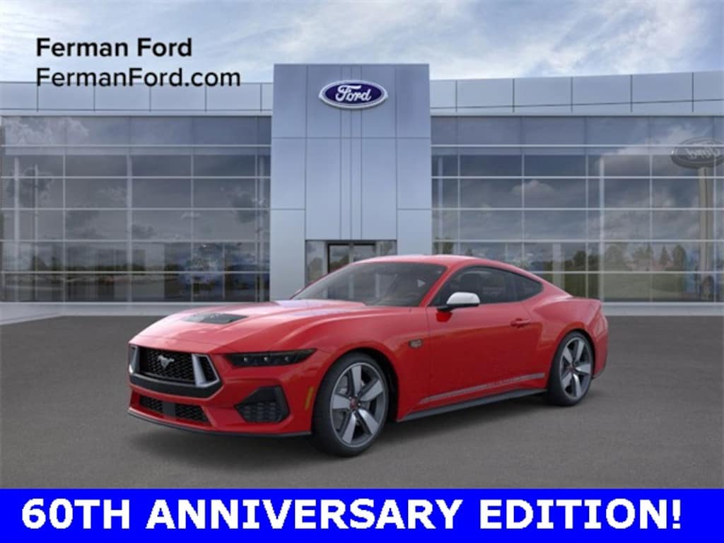 FIND IT AT FERMAN!, Free Delivery within 100 miles!, The 2025 Ford Mustang GT Premium with the 60th Anniversary Package is a striking tribute to six decades of American muscle car legacy. This limited-edition model blends modern performance with heritage-inspired design, making it a standout choice for enthusiasts and collectors alike. Powered by a 5.0L Coyote V8 engine delivering 480 horsepower and 415 lb-ft of torque, the GT Premium offers exhilarating performance with your choice of a 6-speed manual or 10-speed automatic transmission. It retains the sharp handling and unmistakable exhaust note that define the Mustang experience. What sets this model apart is the 60th Anniversary Packageavailable in exclusive colors like Wimbledon White, Vapor Blue, and Race Red, all accented with throwback side stripes in Iconic Silver or Vermillion Red. It features a retro-styled mesh grille, smoked headlamps, chrome mirror caps, and serialized badging on the fenders and trunk. Distinctive 20-inch Dark Gravity Gray wheels with red center caps further connect this edition to its 1965 roots. Inside, the cabin is outfitted with leather-trimmed seats in color options like Black Onyx, Space Gray, or Carmine Red. A 60th Anniversary dash plaque with unique serial number adds exclusivity to the interior. Standard GT Premium amenities include heated and ventilated front seats, ambient lighting, dual-zone climate control, and a digital instrument cluster paired with a 13.2-inch SYNC 4 touchscreen. Limited to just 1,965 units, the 2025 Mustang GT Premium 60th Anniversary Edition is more than a modern performance carits a piece of Mustang history. With its unique styling, powerful V8 engine, and collector appeal, its designed for drivers who want to celebrate Mustangs legacy in style., 20" Wheels, 4-Wheel Disc Brakes, 60th Anniversary Package, ABS brakes, Active Anti-Theft System, Alloy wheels, Anniversary Special Edition Badge, Compass, Connected Navigation, Driver Seat & Mirrors Memory, Electronic Stability Control, Equipment Group 401A High Package, Exterior Parking Camera Rear, Ford Co-Pilot360 Assist+, Four wheel independent suspension, Front dual zone A/C, Fully automatic headlights, Headlamps w/Black Bezels, Heated door mirrors, Heated front seats, Illuminated Door-Sill Scuff Plates, Illuminated entry, Integrated Turn Signals, Leather-Trimmed Bucket Seats w/Color Accents, Locking Center Console, Low tire pressure warning, Painted High Gloss Black Honeycomb Grille, Power driver seat, Power steering, Power windows, Pre-Collision Assist w/Automatic Emergency Braking, Remote keyless entry, Security Package, Silver Painted Mirror Caps, Steering wheel mounted audio controls, Traction control, Ventilated front seats, Wheel Locking Kit, Wheels: 20" x 9" Bright Machined Aluminum. Not all customers qualify for all rebates. Price includes. : $3500 - Retail Customer Cash. Exp. 01/05/2026