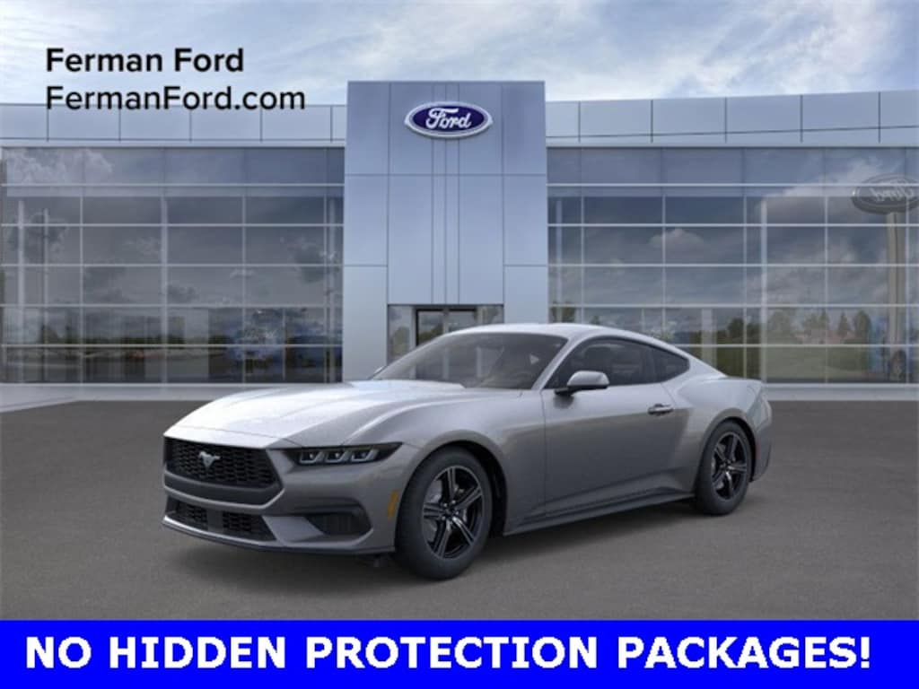 FIND IT AT FERMAN!, Free Delivery within 100 miles!, The 2025 Mustang EcoBoost represents the entry performance Mustang (not in a bad way), offering the Mustang style, rear-wheel drive dynamics, and modern tech but with a more efficient, versatile engine. Its ideal for someone who wants Mustang thrills without necessarily going full V8. Powertrain & Performance Engine: 2.3-liter turbocharged EcoBoost inline-4, producing approximately 315 horsepower and 350 lb-ft of torque. Transmission: Paired with a 10-speed automatic transmission (in the EcoBoost model) and rear-wheel drive. Drive modes: Multiple selectable drive modes (Normal, Sport, Track, Slippery, etc.) to adjust engine, steering, and stability control behavior. Fuel efficiency: Because it uses the turbo 4-cyl rather than V8, the EcoBoost offers a more efficient trade-off between performance and economy. Handling: Independent rear suspension, electronic power-assist steering, and standard Mustang dynamics mean the car is built to handle aggressively but still be manageable everyday. Exterior & Design Elements The 2025 Mustang has updated styling cues: strong, athletic posture, wide stance, signature Mustang proportions (long hood, short rear deck). On the EcoBoost model youll get performance-inspired touches: sporty wheels, dual exhaust tips, bold Mustang badging, LED lighting elements, and possibly special appearance packages (e.g., Nite Pony, Bronze Appearance) to customize the look. One standout detail is the large 13.2-inch touchscreen in many trims, paired with a 12.4-inch digital instrument cluster, giving the cockpit a modern, high-tech feel. Interior & Tech Inside youll find a driver-centric cockpit: performance-oriented gauges, paddle shifters (if equipped), sport seats, and a layout geared toward spirited driving. Tech features: The SYNC 4 infotainment system with a large touchscreen, smartphone integration (Apple CarPlay, Android Auto), good sound system, and comfort features like heated/ventilated front seats (in higher trims). Premium touches in nicer trims: upscale materials, ambient lighting, and thoughtful design elements meaning you dont feel like you gave up luxury for performance. Practicality & Everyday Use The EcoBoost offers more everyday practicality compared to a V8 due to better fuel economy, lower running costs, and perhaps broader usability (daily driving, commuting, occasional spirited driving). Rear-wheel drive delivers the classic Mustang feel youll still get the dynamic character, but with somewhat less harshness than a race-derived model. Cargo capacity and passenger space: It remains a 4-seater (typically two front, two back), and the rear seats are best for smaller passengers or short trips. The trunk is usable for gear. Good for a mix of use: weekend fun, daily driving, road trips. Character & Appeal The 2025 Mustang EcoBoost is for the driver who wants to feel like theyre behind a muscle car, but maybe doesnt want the higher costs (fuel, insurance, maintenance) of a V8. It offers a balance of fun and practicality: the sound, the look, the performance feel without going extreme. It also leaves room for upgrade: appearance packages, performance packages, and aftermarket tuning make the EcoBoost versatile as an enthusiasts platform., 4-Wheel Disc Brakes, 9-Speaker Stereo System, Automatic temperature control, Cloth/Vinyl Heated Bucket Seats, Electronic Stability Control, Equipment Group 101A High Package, Exterior Parking Camera Rear, Four wheel independent suspension, Fully automatic headlights, Power steering, Power windows, Remote keyless entry, SiriusXM w/360L & HD Radio, Steering wheel mounted audio controls, SYNC 4. Not all customers qualify for all rebates. Price includes. : $1000 - Open Bonus Cash. Exp. 01/05/2026 $1500 - Retail Customer Cash. Exp. 01/05/2026
