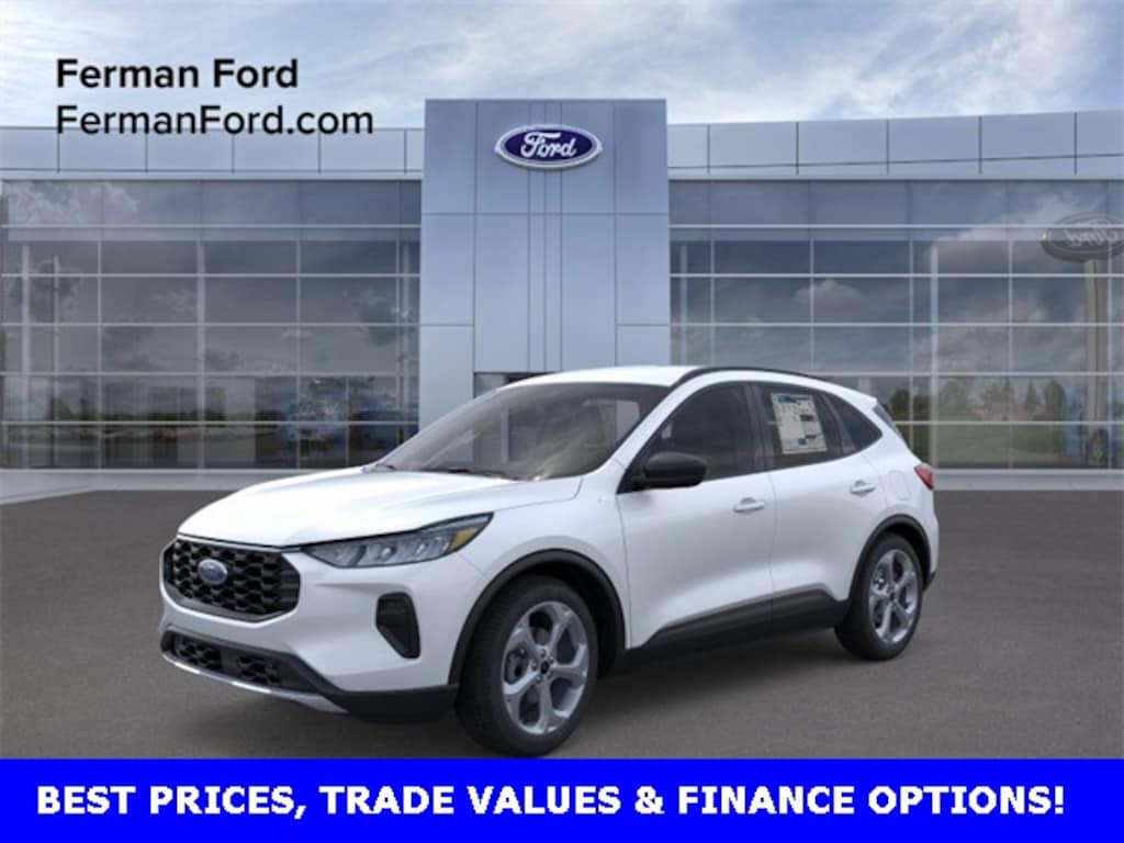 FIND IT AT FERMAN!, Free Delivery within 100 miles!, Sleek, sporty, and smart the 2026 Ford Escape ST-Line in Space Silver with the Tech Package strikes the perfect balance between athletic styling and modern convenience. Heres how it stands out: Exterior & Visual Appeal The Space Silver finish gives this Escape a clean, futuristic presence its light metallic tone accentuates body lines and contrasts beautifully with black trim accents. On the ST-Line trim, expect sport-inspired touches: a bold black mesh grille, sculpted lower fascia, darkened exterior accents, and unique wheel designs that underscore its athletic intent. LED lighting elements from signature LED daytime running lights to sharp taillights lend a modern, premium edge. With roof rails, sculpted side panels, and a dynamic stance, this Escape carries both function and flair. Interior Comfort & Ambience Step inside, and youre greeted by a cabin with a sporty yet refined feel: premium materials, contrast stitching, and supportive seats designed for both daily drives and spirited journeys. The tech-enhanced trim enhances the user experience with upgrades in connectivity, display interfaces, and smart integrations (included through the Tech Package). Ambient lighting, well-thought ergonomics, and acoustic insulation contribute to a comfortable and inviting space. Technology & Connectivity (Tech Package Highlights) A feature-packed Tech Package elevates your interior experience: larger touchscreen interface, enhanced navigation, upgraded voice recognition, and possibly an upgraded audio system. Wireless smartphone integration, over-the-air updates, and intuitive usability make daily use effortless. Expect driver-assist features tied into the tech suite parking aids, camera systems, and smart alerts to heighten safety. Performance & Efficiency While the ST-Line emphasizes sportiness, it doesnt sacrifice practicality. The Escape offers engines tuned for balance of power and fuel economy, ideal for urban commuting or weekend escapes. Handling is responsive yet composed: suspension tuning on the ST-Line leans toward crisp steering and agile cornering while keeping ride comfort intact. Available all-wheel drive (or drive modes, depending on configuration) supports better traction and adaptability across road conditions. Driving Experience & Character Behind the wheel, the Escape ST-Line with the Tech Package presents itself as a confident crossover athletic without overreaching, modern without being fussy. The Space Silver color ensures it commands attention without being flashy its clean, purposeful, and contemporary. Whether commuting, ferrying passengers, or venturing out on longer drives, it brings a cohesive blend of style, tech, and usability., 4-Wheel Disc Brakes, Adaptive Cruise Control w/Stop-and-Go, Automatic temperature control, Connected Navigation, Equipment Group 300A, Ford Co-Pilot360 Assist+, Four wheel independent suspension, Fully automatic headlights, Intersection Assist, Power driver seat, Power steering, Power windows, Predictive Speed Assist, Rear Parking Sensor, Rear-View Camera, Remote keyless entry, Steering wheel mounted audio controls, SYNC 4 w/Enhanced Voice Recognition, Tech Pack #1. Not all customers qualify for all rebates. Price includes. : $2000 - Bonus Customer Cash. Exp. 01/05/2026
