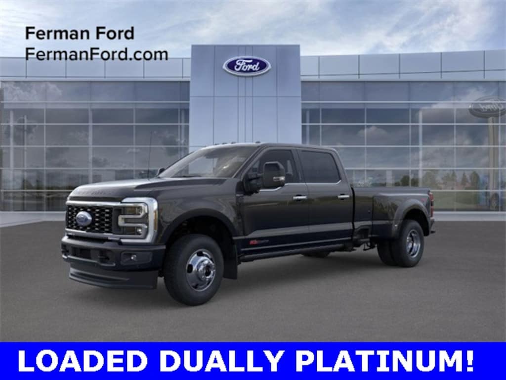 FIND IT AT FERMAN!, Free Delivery within 100 miles!, 2025 Ford F-350 Super Duty Platinum DRW 6.7 L High-Output Power Stroke Diesel Mighty Performance for the Toughest Jobs At its core is the legendary 6.7 L High-Output Power Stroke V8 Turbo Diesel, producing an impressive 500 horsepower and 1,200 lb-ft of torque. Paired with Fords TorqShift 10-speed automatic transmission, it delivers relentless pulling power and smooth performance under heavy load. Heavy-Duty Strength with Dual Rear Wheels Built on a dual-rear-wheel (DRW) platform, this Platinum edition Super Duty is engineered for ultimate stability and capability. When properly equipped, it can tow up to 38,000 pounds, making it one of the most capable heavy-duty pickups on the market. Payload ratings are equally strong, ensuring its ready for any challenge. Platinum Luxury Inside The Platinum trim surrounds you in premium comfort and craftsmanship. Highlights include luxurious leather seating, heated and ventilated front and rear seats, a heated steering wheel, and high-end trim accents. A large digital display with SYNC technology, wireless smartphone connectivity, premium audio, and advanced navigation create a refined, tech-forward cabin. Smart Work Features This truck doesnt just haulit works smarter. Trailer sway control, Pro Trailer Backup Assist, 360-degree camera, onboard scales with Smart Hitch, and multiple drive modes give drivers more confidence on the job or while towing a fifth-wheel or gooseneck trailer. Pro Power Onboard capability adds portable power, turning your truck into a jobsite or campsite generator. Why Choose the Platinum DRW High-Output Diesel? The 2025 F-350 Super Duty Platinum DRW combines unmatched diesel power with Platinum-level luxury. Its a truck for those who demand maximum towing strength, premium comfort, and advanced technologyall in one commanding package., 4WD, Camper Package, FX4 Off-Road Package, Hill Descent Control, Navigation system: Connected Navigation, Off-Road Specifically Tuned Shock Absorbers, Order Code 723A, Rear Stabilizer Bar & Auxiliary Springs, Unique FX4 Off-Road Box Decal.