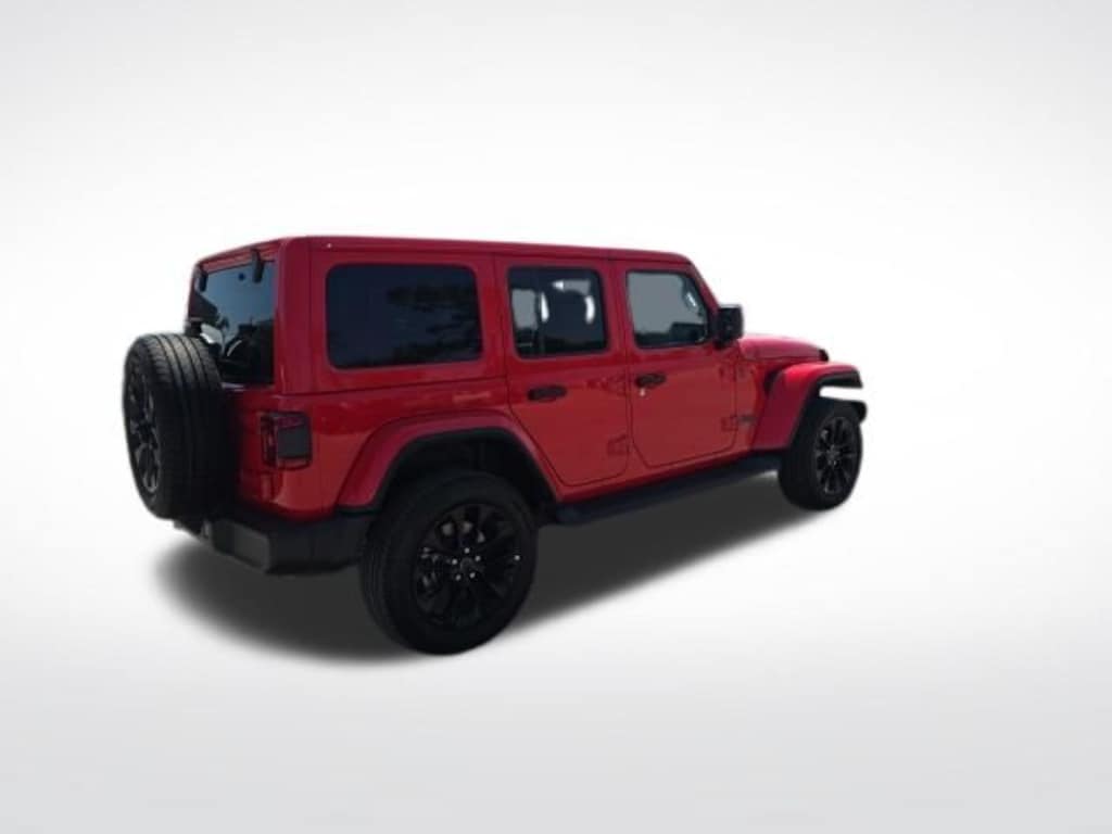 Indulge in the convenience of advanced features like Google Android Auto, automatic temperature control, and the ParkView Rear Back-Up Camera. The Sahara 4xe also boasts a stunning Firecracker Red Clearcoat exterior, complemented by a spacious and well-appointed interior.